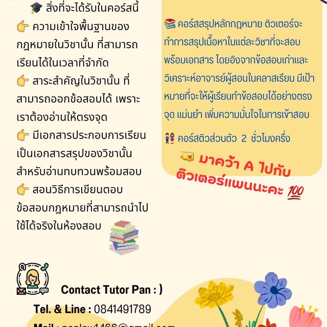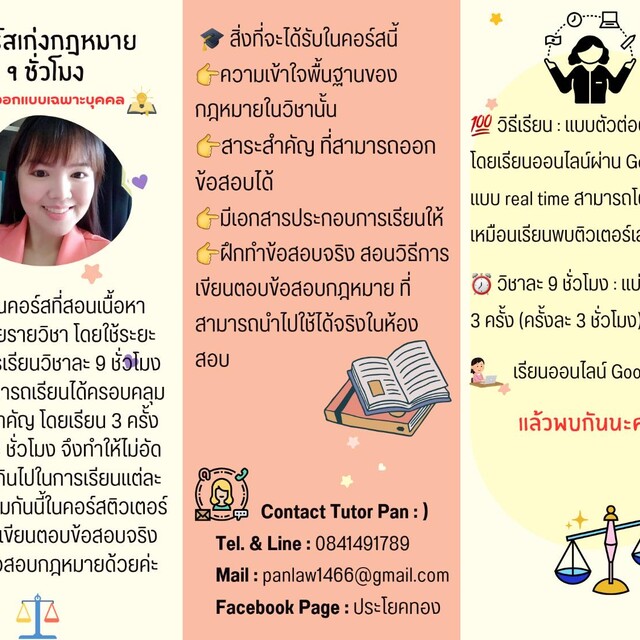 🔥 : คอร์ส Tutor Pan Online เปิดแล้ว !! เรียนได้ทุกที่ ทุกเวลา 📌 มาพร้อมเอกสารทุกวิชา และยังสามารถถามตอบปัญหาข้อกฎหมายแบบตัวต่อตัวกับติวเตอร์ได้เช่นเคยค่ะ…
