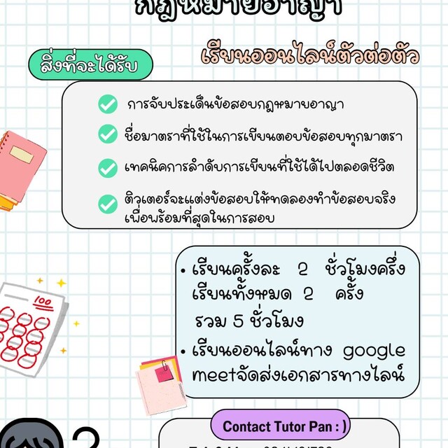🍀 ติวกฎหมายทุกระดับชั้น ➡️ เน้นติวแบบส่วนตัว (private course)