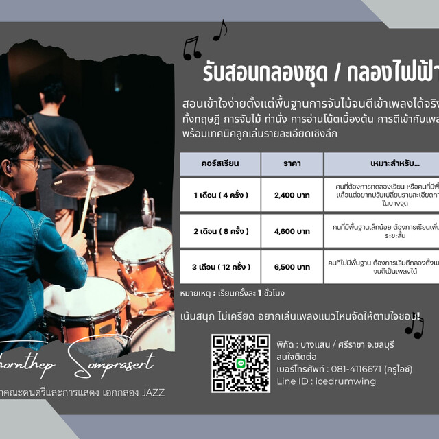 รับสอนกลองพื้นฐานทั่วไป จนถึงประกอบอาชีพ