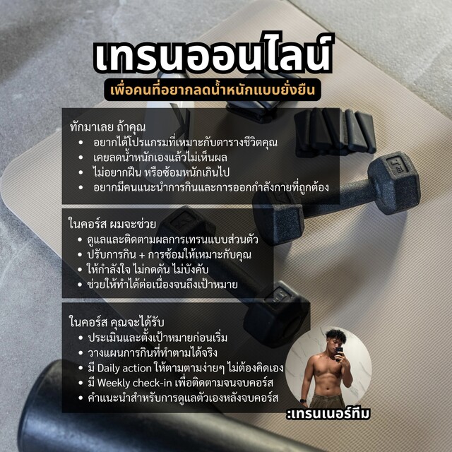 เทรนเนอร์ฟิตเนสออนไลน์ตัวต่อตัว