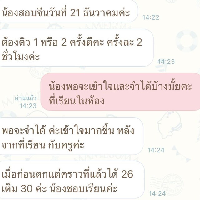 #สอนครบทุกทักษะ ฟัง พูด อ่านเขียน (ใครclass จะเน้นฟังพูดอ่านมากกว่า ทักษะการเขียนจะให้เป็นการบ้านและสอบถามเหล่าซือได้ทุกเวลาเมื่อมีข้อสงสัย)