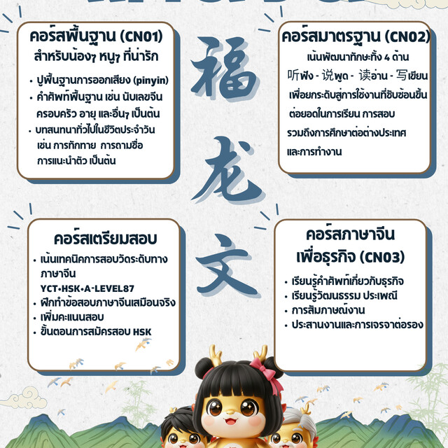 📢 เน้นทักษะการ ฟัง-พูด-อ่าน-เขียน ซึ่งเป็นพื้นฐานสำหรับการเรียนภาษาจีน