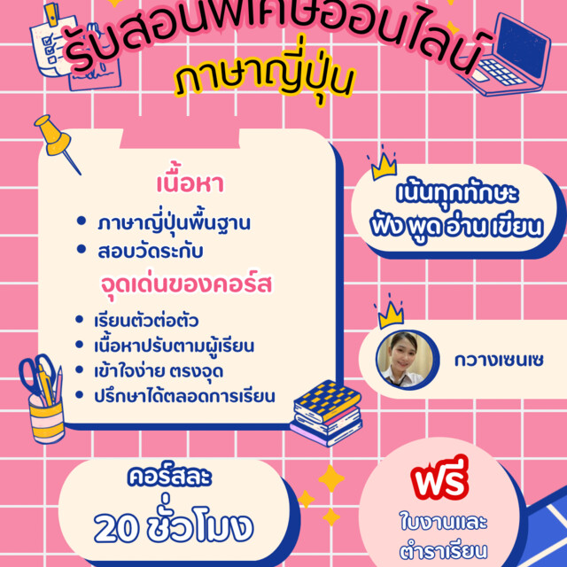 รับสอนพิเศษให้กับผู้ที่สนใจภาษาญี่ปุ่น