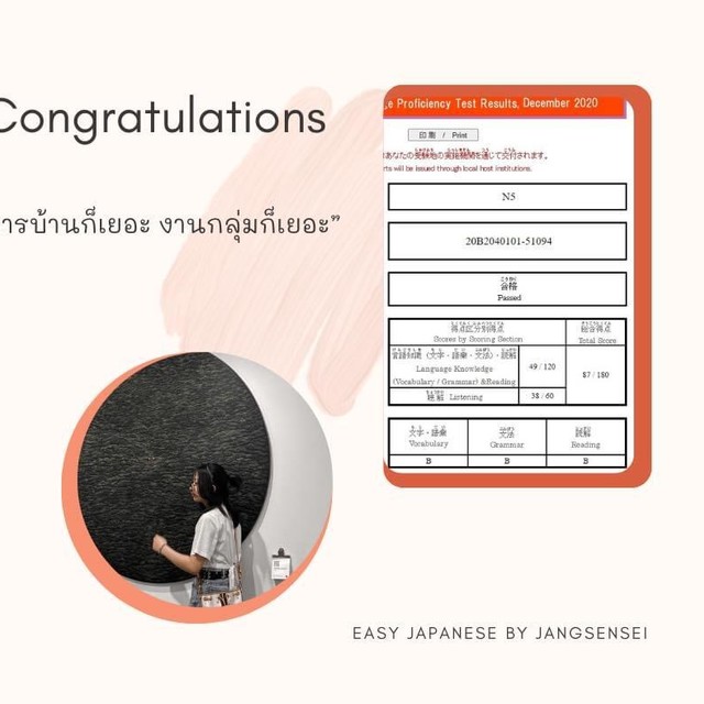 มีผลสอบ JLPT ระดับN4 ส่วนที่ถนัดพิเศษจะเป็นแกรมม่าค่ะ
