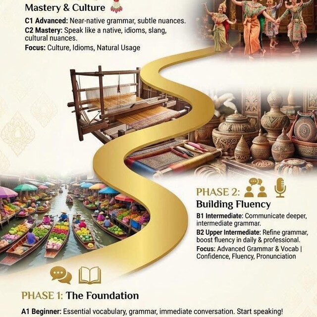*เน้นการเรียนการสอนแบบสอนทนามากกว่าแกรมม่า ไวยากรณ์ เน้นการใช้จริง