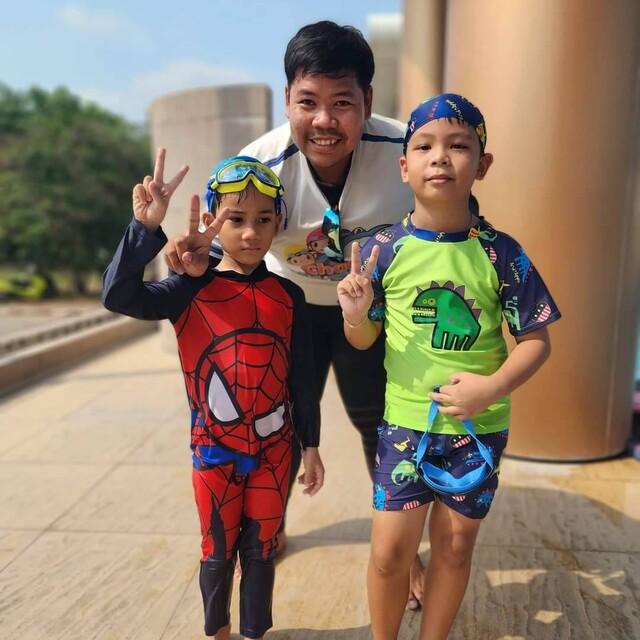ตัวเองเลยลงเรียนกับครูด้วย เพื่อที่จะสามารถไปว่ายน้ำเล่นน้ำกับลูกได้