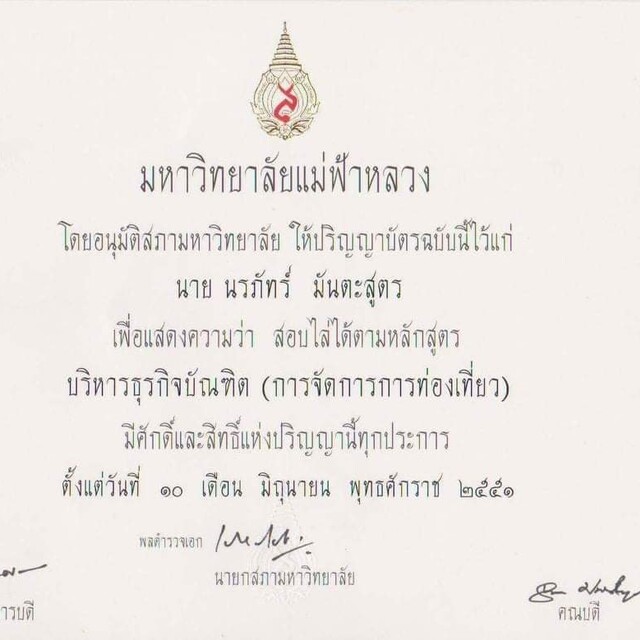 เรียนจบการศึกษาที่ มหาวิทยาลัย แม่ฟ้าหลวง
