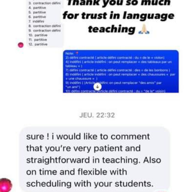 นักเรียนทุน Université de Montpellier ประเทศฝรั่งเศส เกียรตินิยม ประสบการณ์สอนกว่า 8 ปี รับสอนผู้ใหญ่ นักเรียน ติวเข้มสอบ A level ฝรั่งเศส และ DELF