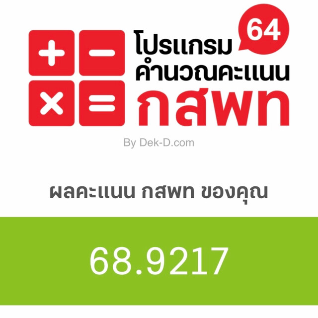 - คะแนน ONET วิชาคณิตศาสตร์ 87.5 คะแนน