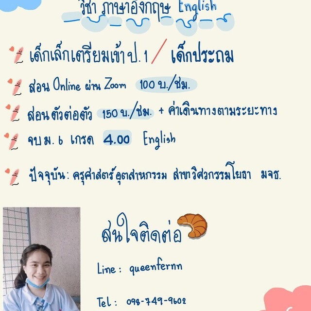 รับสอนภาษาอังกฤษ สอนการบ้าน เด็กเล็ก เตรียมเข้าป.1 เด็กประถม