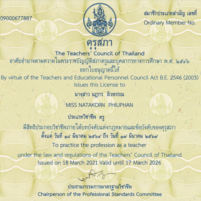 📌มีใบอนุญาตประกอบวิชาชีพครูจาก คุรุสภา