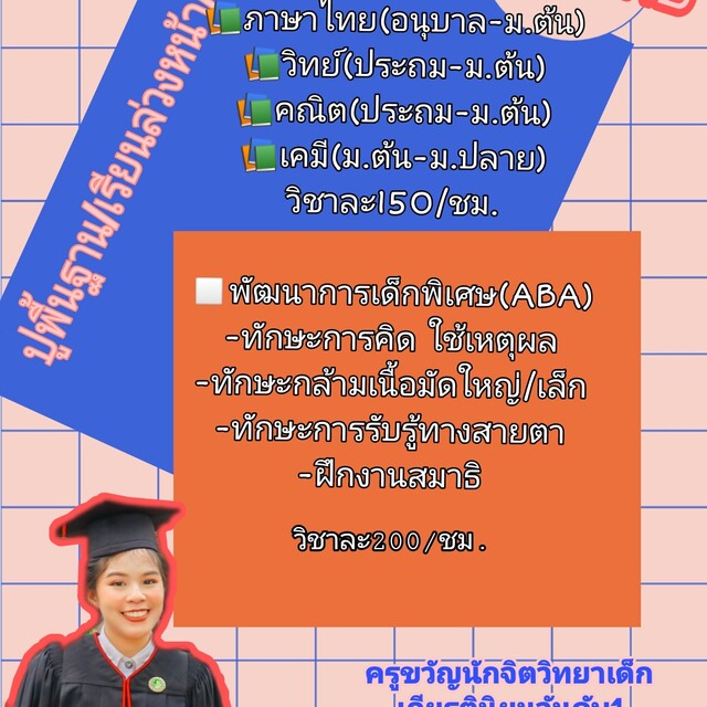 ครูขวัญ นักจิตวิทยา สอนคณิตศาสตร์ วิทยาศาสตร์ การสอนเด็กพิเศษ