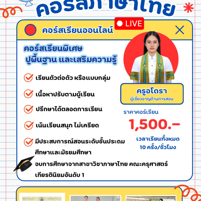 ภาษาไทยสำหรับประถมศึกษา 250 บาท ต่อชั่วโมง