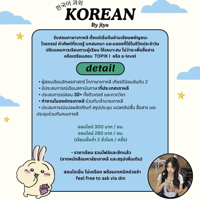 basic & intermediate korean (ประสบการณ์ 3ปี+)300 บาท ต่อชั่วโมง