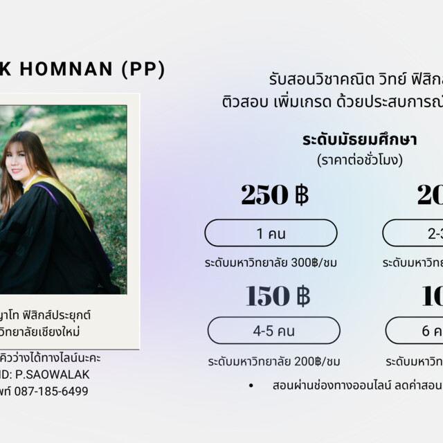 Saowalak Homnan สอนคณิตศาสตร์ วิทยาศาสตร์ ฟิสิกส์