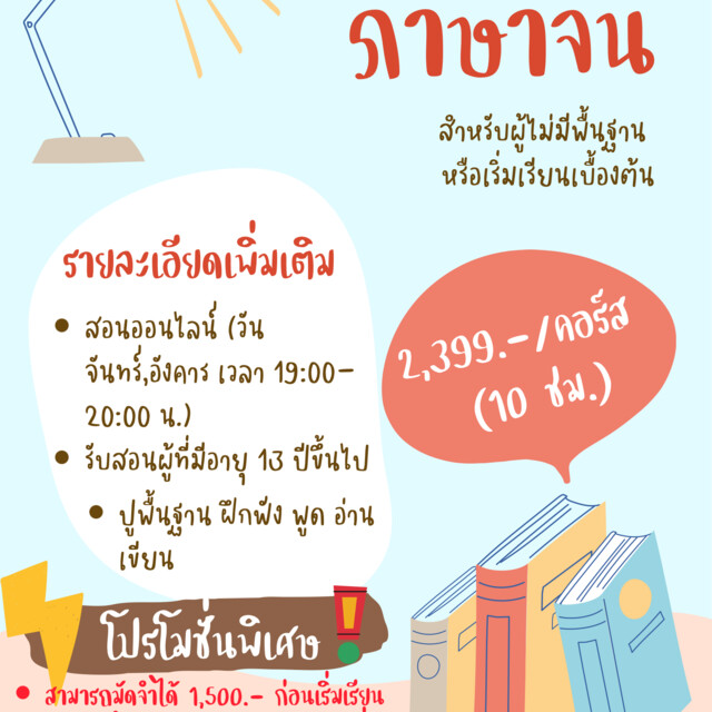ภาษาจีนเบื้องต้น240 บาท ต่อชั่วโมง