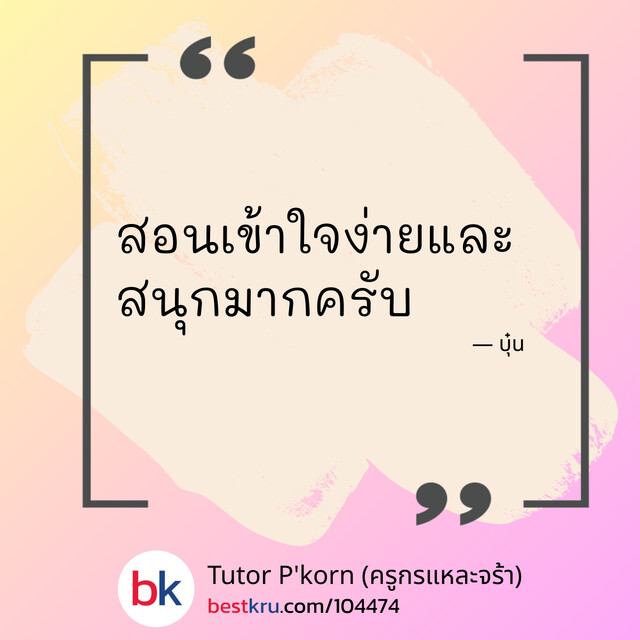 พี่พรสอนเข้าใจมากๆเลยค่ะ จากที่ไม่เคยเข้าใจทำให้เราได้เข้าใจขึ้นเยอะเลยค่ะ พี่กรใจดีด้วยแถมพูดเพราะอีกต่างหาก