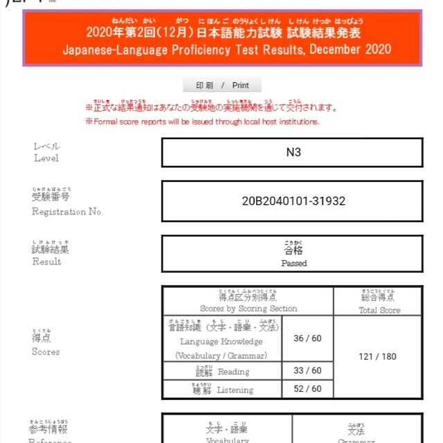 และมีผลสอบผ่าน JLPT N3