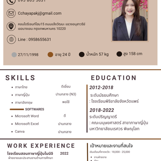 *หากสนใจดูเบอร์ติดต่อ(line)ได้จากเรซูเม่*หรือติดต่อผ่านแอพนี้ค่ะ