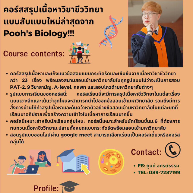 เรียนชีววิทยาแบบเข้มข้น โดยพี่ภู ชีววิทยา มหิดล250 บาท ต่อชั่วโมง