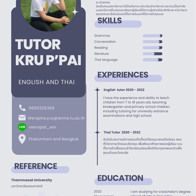 ติวเตอครูพี่ไป๋ธรรมศาสตร์ สอนภาษาอังกฤษ