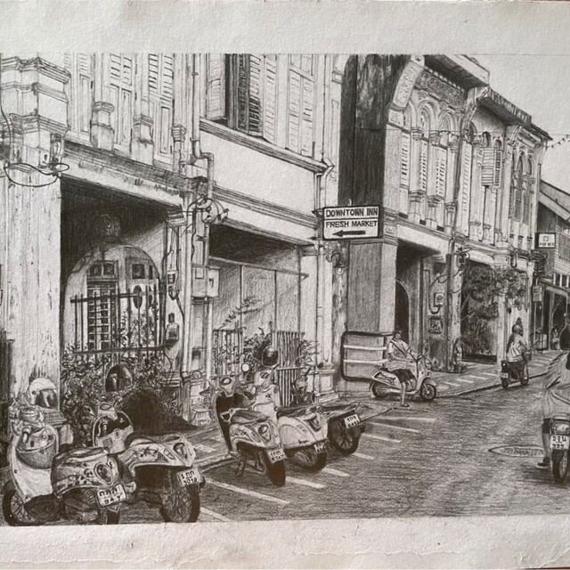 การวาดรูปทัศนียภาพโดยใช้ดินสอ หรือปากกา