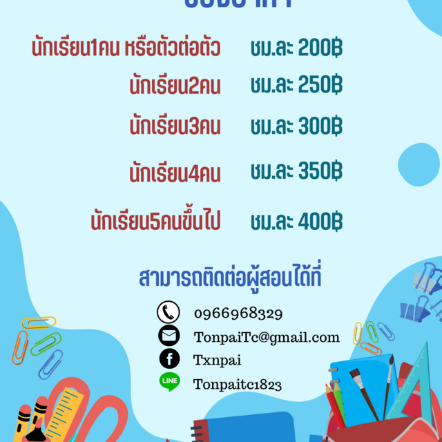 เรียนตัวต่อตัว ชั่วโมงละ 200