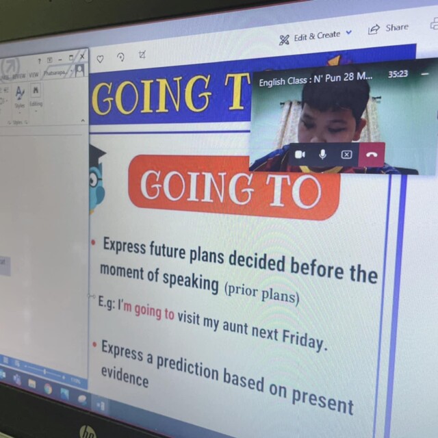 - การเรียนการสอนแบบออนไลน์ผ่านระบบ Microsoft Teams ดังนั้นไม่ต้องกังวลว่านักเรียนที่อยู่ต่างจังหวัดจะไม่สะดวกเรียน ครูแอมมีเด็กต่างจังหวัดหลายคนเลยค่ะที่เรียนผ่านระบบออนไลน์ เน้นการฝึกสนทนาภาษาอังกฤษ สอนแกรมม่าตามระดับชั้น สอนการอ่าน หรือหากช่วงไหนนักเรียนต้องสอบ มีแนวข้อสอบที่โรงเรียนมาครูติวให้ค่ะ รวมถึงติวการบ้านด้วย