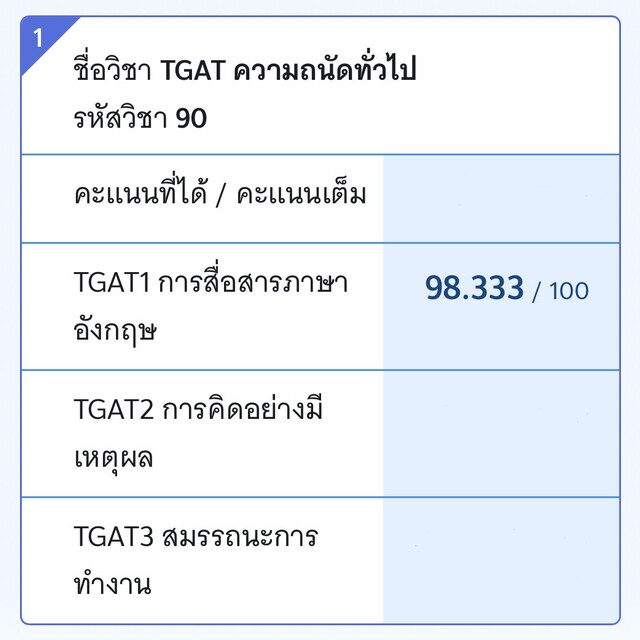 - TGAT1 ภาษาอังกฤษ 98.33/100