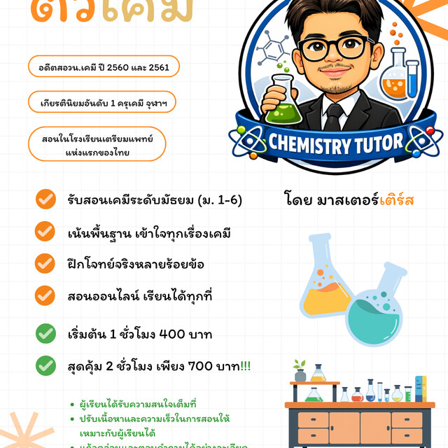 +รับสอนเคมี ม.1-6 และ คณิตศาสตร์ ม.1-4 +