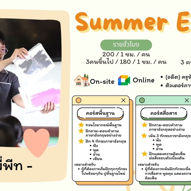 ปรับพื้นฐาน เน้นสื่อสาร พร้อมต่อยอด250 บาท ต่อชั่วโมง