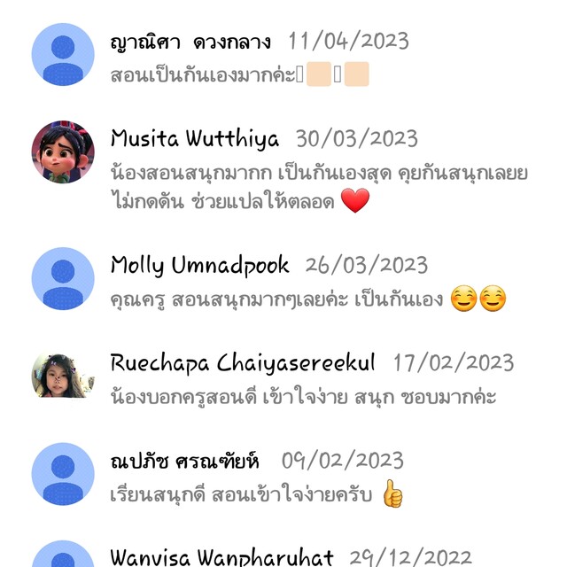 ในชั่วโมงก็จะไม่เครียด คุยกันสนุกๆ ไม่เข้าใจก็ถามได้ตลอดค่ะ ☺☺🥰🥰🙏🙏