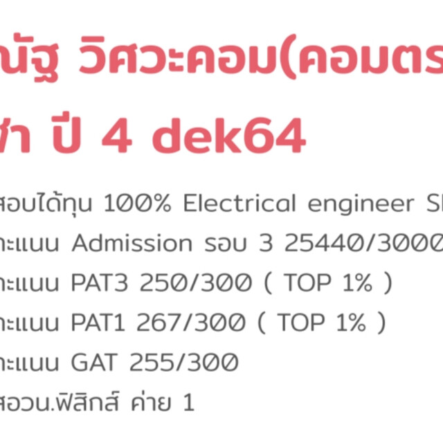 - คะแนนสอบ Pat3 : 250/300 (TOP 1%)