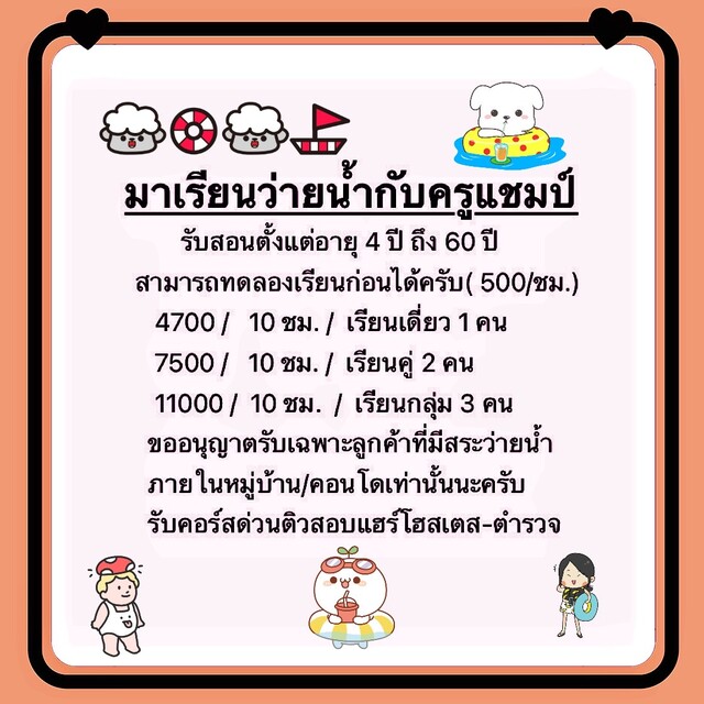 ครูแชมป์ รับสอนว่ายน้ำ อายุ 4 ปี - 60 ปี ทั่วกรุงเทพและปริมณฑล