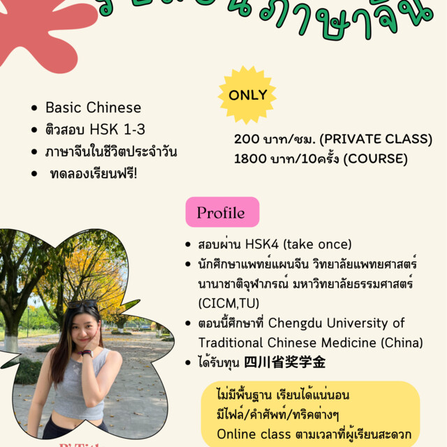 มาเรียนภาษาจีนกันคั้บบบ🥰 ราคาเป็นกันเอง เลือกเวลาเรียนตามชอบ ปรึกษาและวางแผนการเรียนได้เลยคั้บ