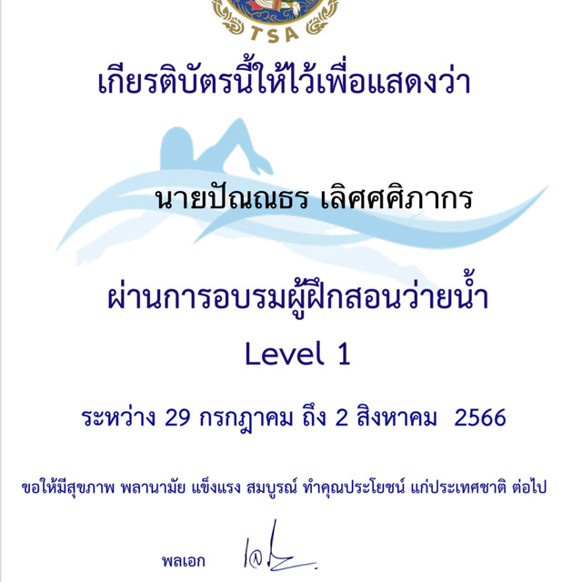-เคยเป็น Swim Coach ที่โรงเรียนนานาชาติร่วมฤดี (RIS)