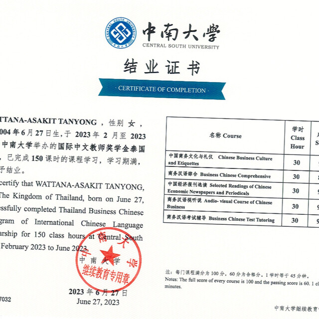 Language Program of International Chinese Language Teachers Scholarship ของมหาวิทยาลัย Central South