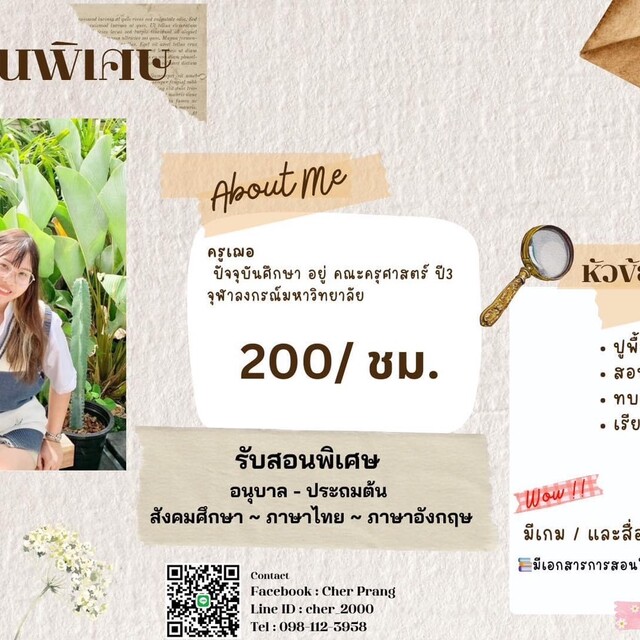 สวัสดีค่ะ ครูเฌอรับสอนพิเศษ ไทย - สังคม - English