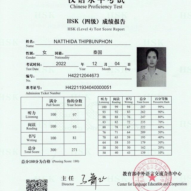 >ผ่านการสอบHSKระดับ4 และ ระดับ5