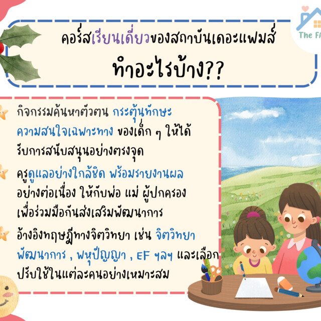 เดอะแฟมส์มุ่งให้เด็ก ๆ เรียนรู้อย่างมีความสุข ออกแบบหลักสูตรโดยอ้างอิงหลักจิตวิทยาพัฒนาการ ทฤษฎีพหุปัญญา