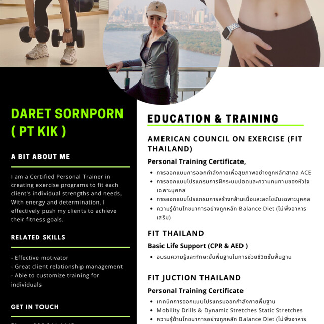 PT KIK เทรนเนอร์ผู้หญิง รับสอนออกกำลังกาย ที่ฟิตเนสคอนโด บ้าน หรือ สถานที่ที่ลูกค้าสะดวกค่ะ (Base on Bangkok)