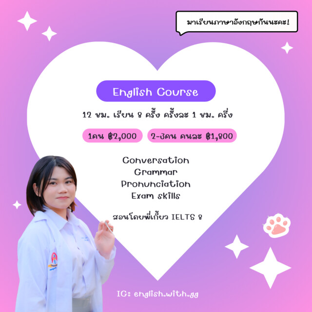 สามารถสอนได้ตั้งแต่ grammar, conversion, writing, errors, และเตรียมสอบ IELTS