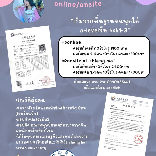 รับสอนพิเศษภาษาจีน เริ่มจากพื้นฐาน hsk1-3 alevelภาษาจีน