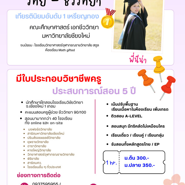 วิทยาศาสตร์ ม.1-3300 บาท ต่อชั่วโมง