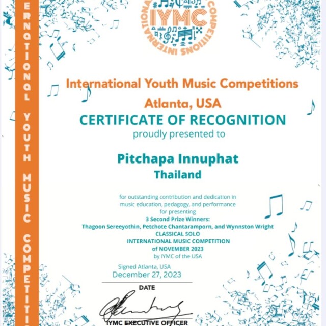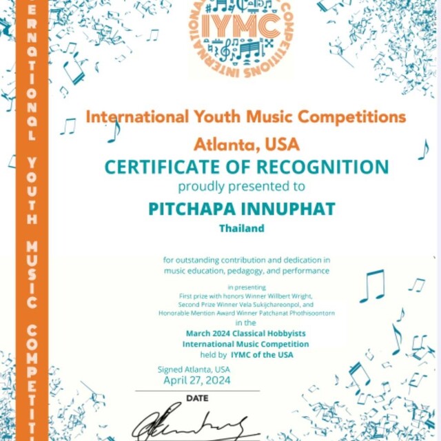 • International Youth Music Competitions (IYMC) -First Prize With Honors