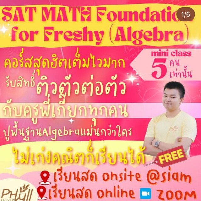 - สอน Sat Math และ CU-ATS Physics มีประสบการณ์ทั้งคลาสกลุ่ม และ private ชั่วโมงการสอนรวมทั้งหมดไม่ต่ำกว่า 100 ชม.