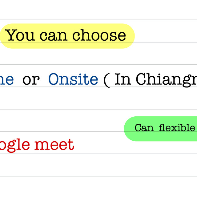 สอนทั้งออนไลน์ และ ออนไซต์ ติวเตอร์อยู่ที่ เชียงใหม่ค่ะ