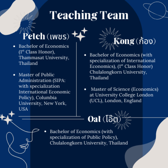 เหมาะกับใครบ้าง: เหมาะกับทุกคนทั้งคนที่เริ่มเรียน ECON คนที่กำลังเรียน หรือคนที่ไม่มีพื้นฐานมาเลยแต่สนใจในวิชานี้ ก็สามารถเรียนได้ แต่ควรเล่า background เราให้ครูฟังเบื้องต้นค่ะ เช่น มีพื้นฐานอะไรมาบ้าง เจอปัญหา/สนใจอะไรถึงอยากเรียน ตารางที่สะดวก ครูจะได้มีวิธีการสอนที่เหมาะสมกับเรามากที่สุด