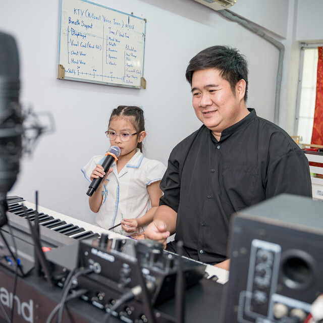 การสอนดนตรีของเราจะมีการแยกเป็นเรียนเดี่ยวและกลุ่ม กลุ่มละไม่เกิน 3 คน แต่ละรายวิชาเรามีบุคลากรในการสอนที่จบดนตรีตรงสายวิชานั้นๆ การสอนมีเนื้อหาที่เข้มข้น แต่จะเน้นความสนุกสนาน เพื่อสร้างความรู้สึกที่ดีกับดนตรี เรามีห้องสอนที่พร้อมรองรับนักเรียน และห้องน้ำเพื่ออำนวยความสะดวก และห้องรับรองสำหรับผู้ปกครองที่มาส่งบุตรหลาน