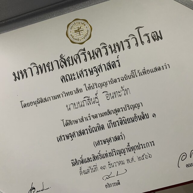 พี่เป๊ก – จบจาก คณะเศรษฐศาสตร์ เกียรตินิยมอันดับ 1 มศว
